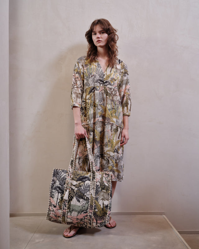 Borsa a spalla in tessuto stampa safari con nappina.