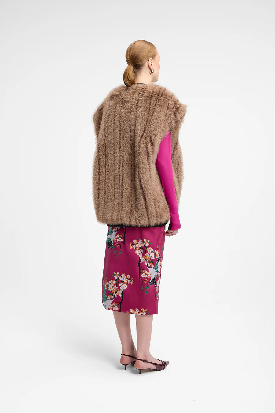 Smanicato in ecopelliccia con ricamo